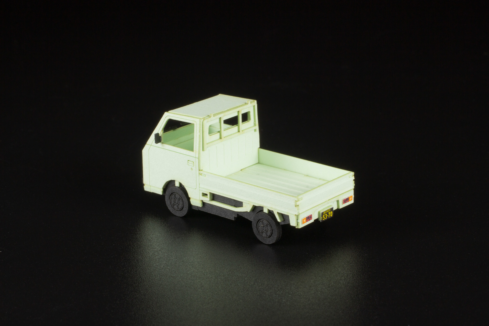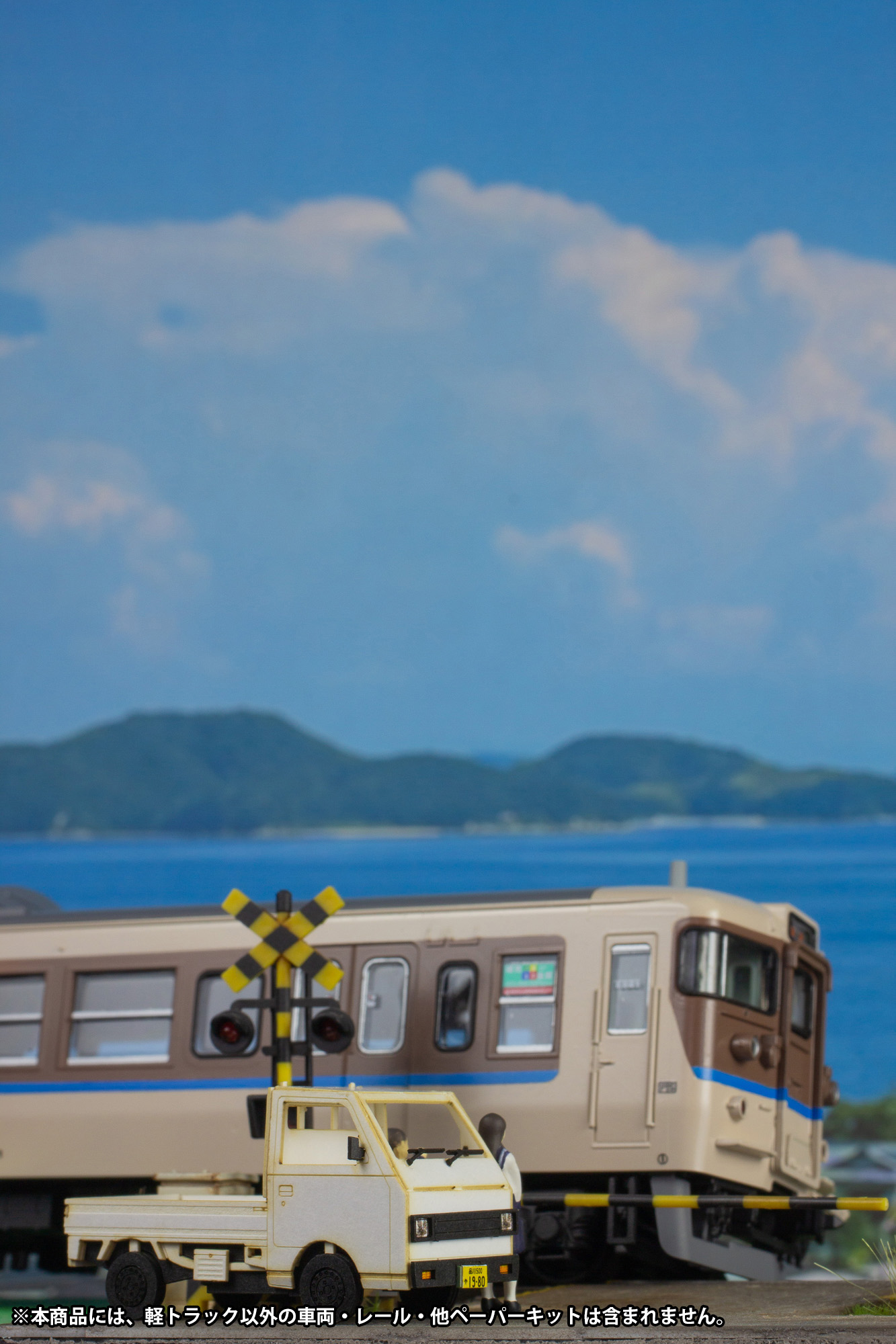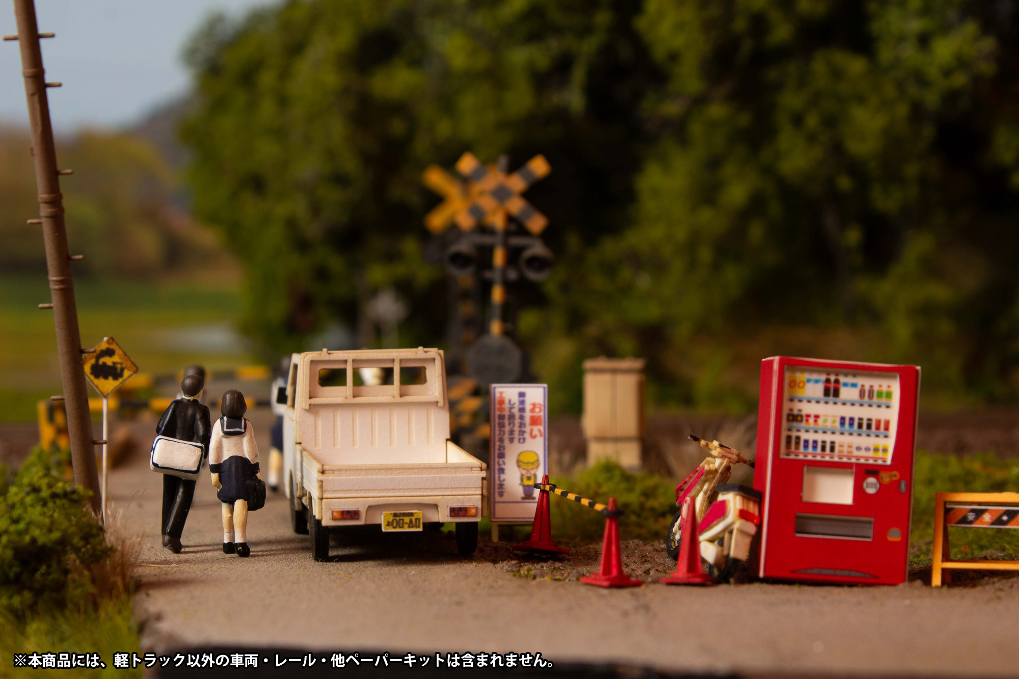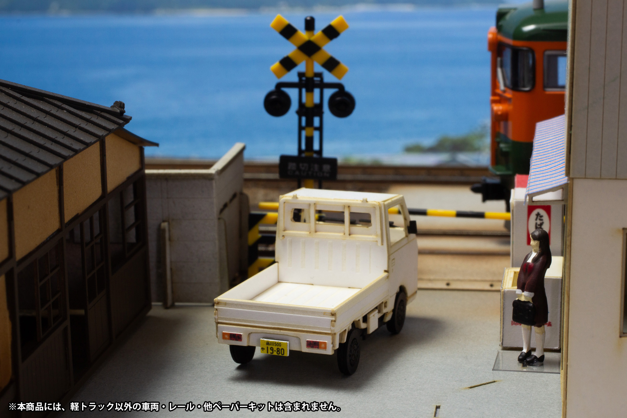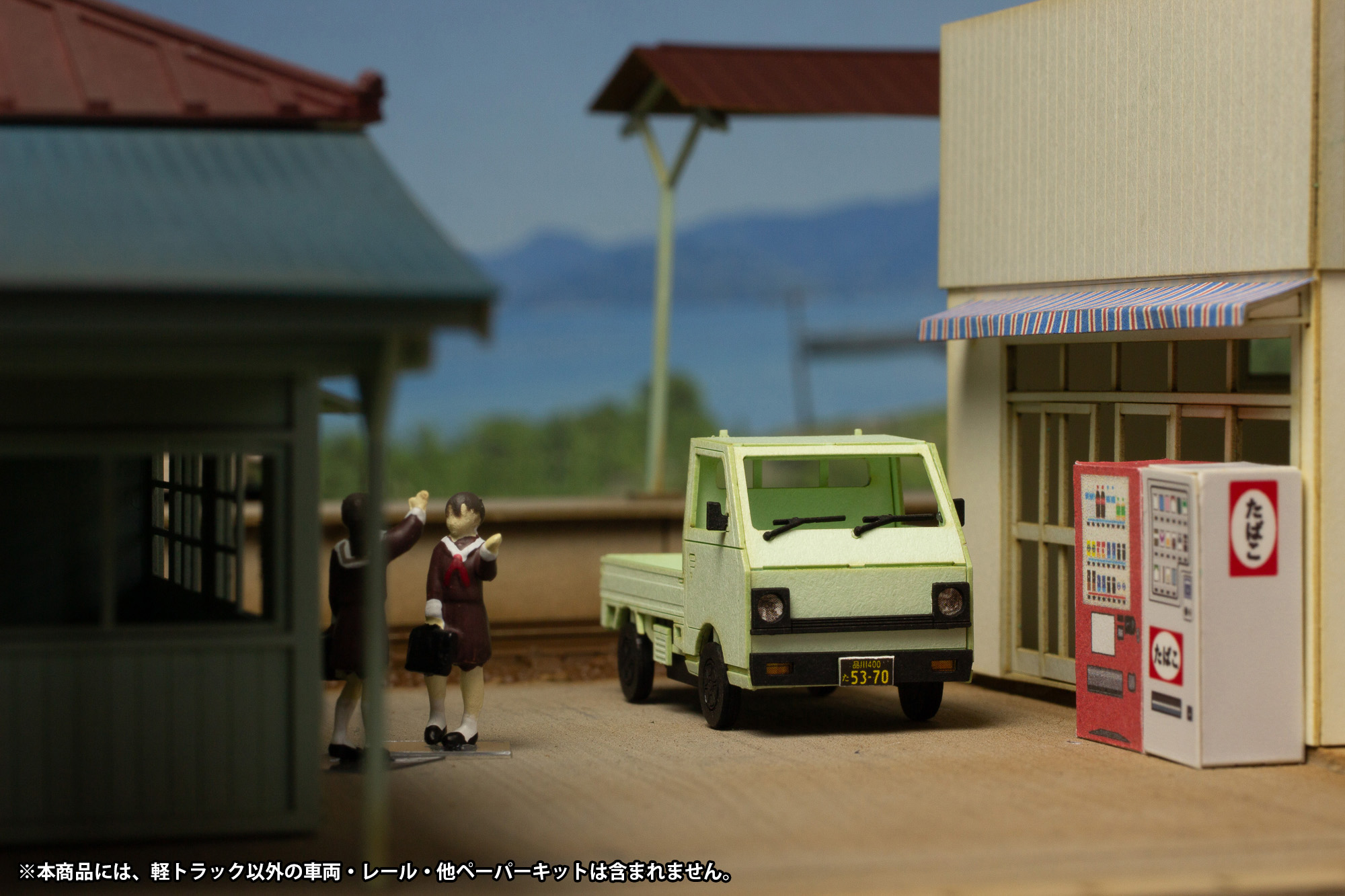 1/80スケール(HOゲージ)サイズのジオラマ作製時や、鉄道模型の撮影時に、チョット欲しい『かゆい所に手が届く』アイテムを展開するペーパーキット【まちかどアクセサリーシリーズ】最新作は経済性・優れた積載量と使い勝手、そして小回りの効く機動性を併せ持った軽トラックをラインナップ!