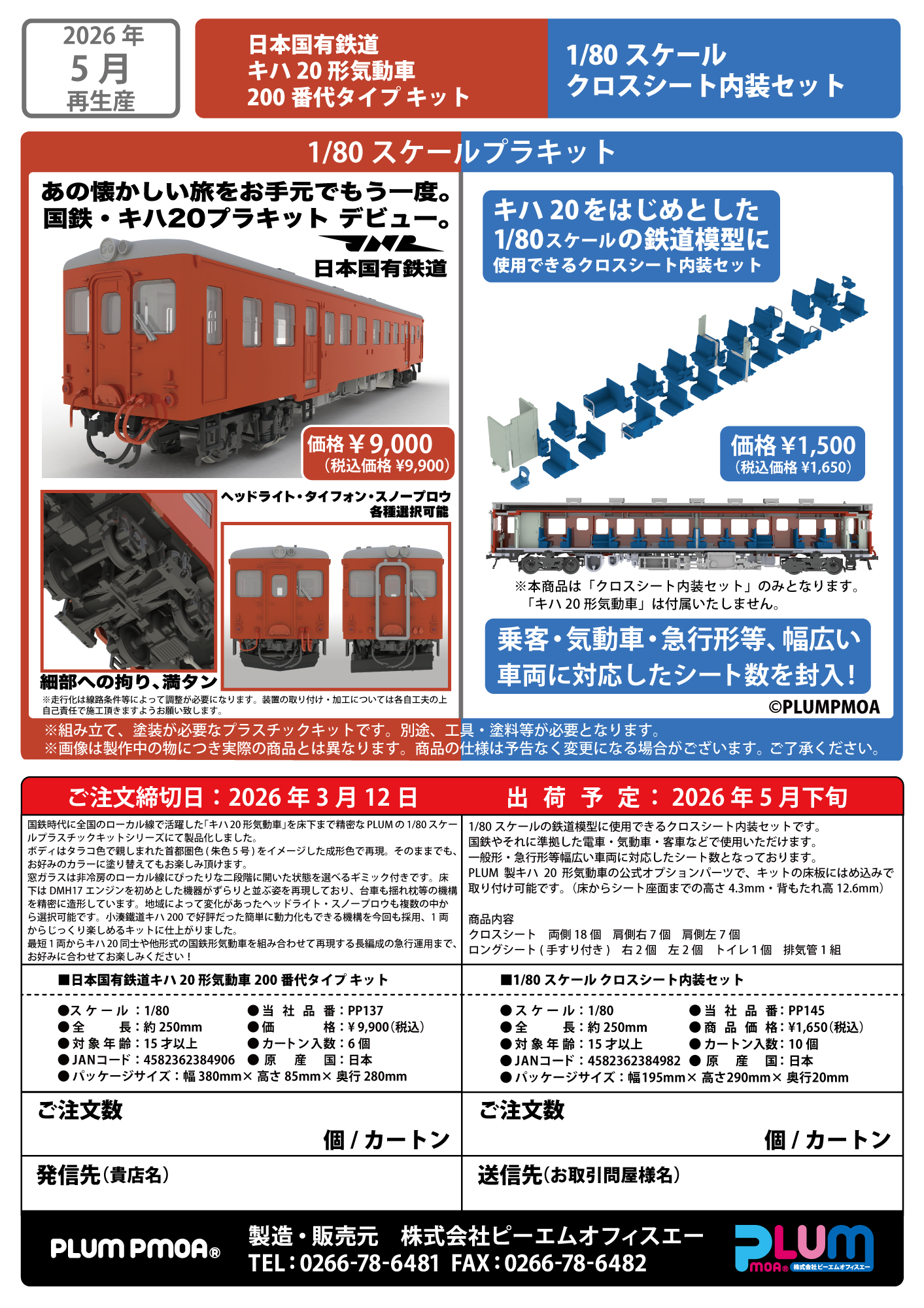 プラスチックキット日本国有鉄道キハ20形気動車200番代タイプ キット |