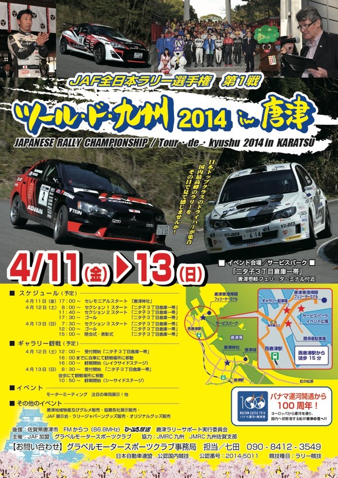 ツール・ド・九州2014in唐津 【サービスパーク】佐賀県唐津市二タ子3丁目倉庫 【セレモニアルスタート】4/11(金)17時〜 唐津神社にて 【販売場所】 二タ子3丁目倉庫 芝生広場 【日時】 2014年4月11日(金)〜13(日) PLUM RACING TEAM 全日本ラリー選手権2014 第一戦!! 弊社のブースでは、企業スポンサー様の賞品の販売、展示を行う 「諏訪物産展」を開催します。 |