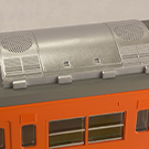 モハ201の「PS24パンタグラフ」や201系の特徴であるチョッパ制御装置も精密再現。 パンタグラフ周りの配管も母線は別体パーツ、鍵外し位置は移設後の中央線仕様で再現しました。 |