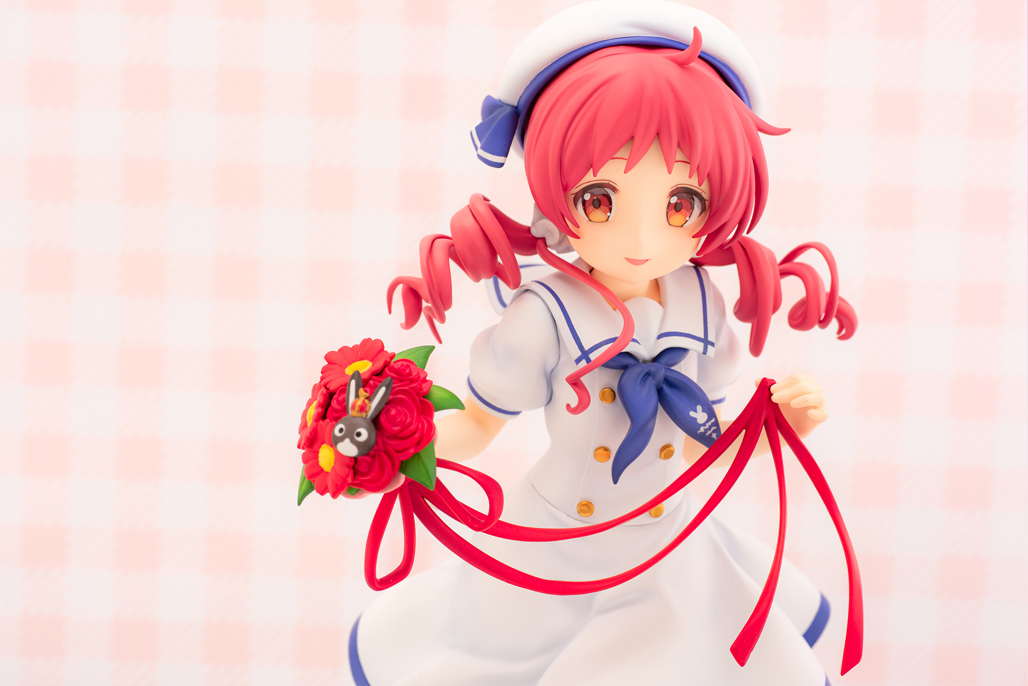 清楚なワンピーススタイルのスカートが軽やかになびく様子や、手元のブーケや石畳の台座なども丁寧に造形しました♪