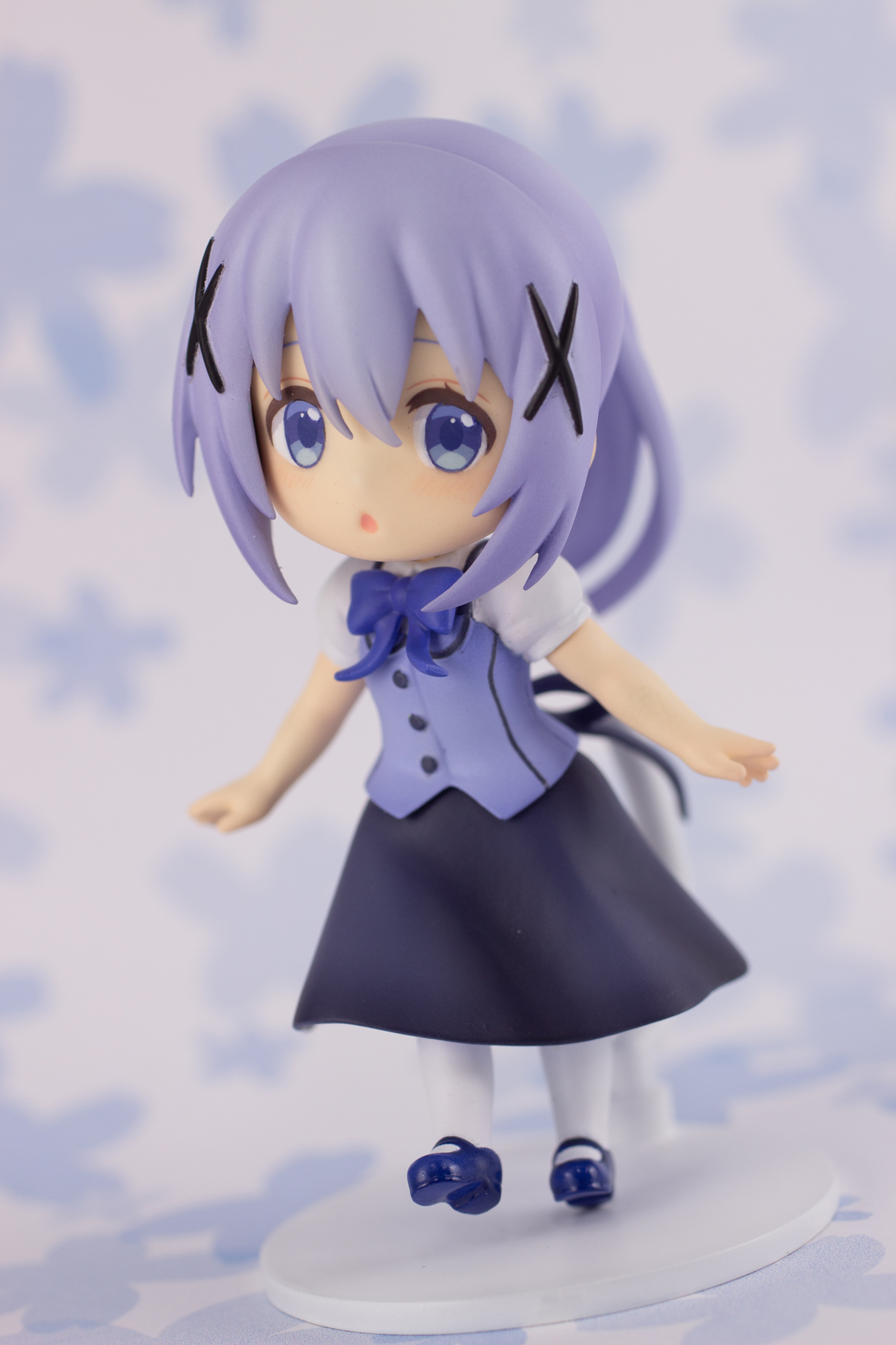 夏服に合わせたアップにした髪型や、チノのトレードマークでもあるX型の髪飾りなども可愛く再現しています。