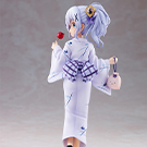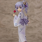 薄いブルーの浴衣に身を包み、こちらを振り向く姿を手元のりんご飴や髪飾りなど細部まで丁寧に造形しました♪