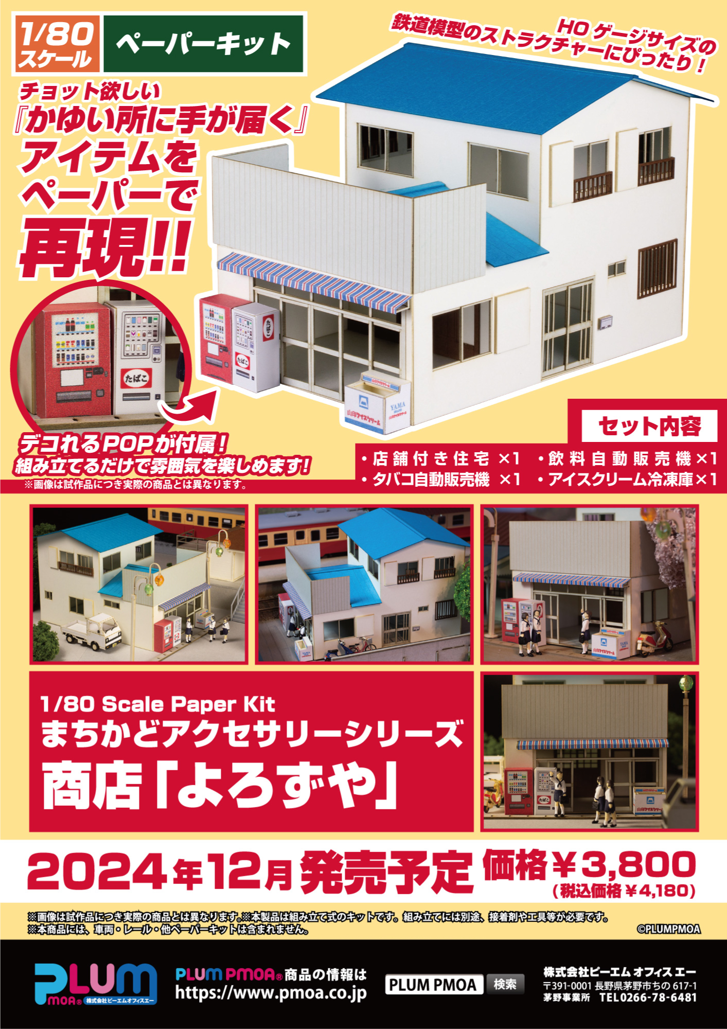 最新作は、まちかどで見かけたおじいちゃんやおばあちゃんが、テレビを観ながら店番をしていそうな懐かしい店舗付き住宅「よろずや」をラインナップ!
