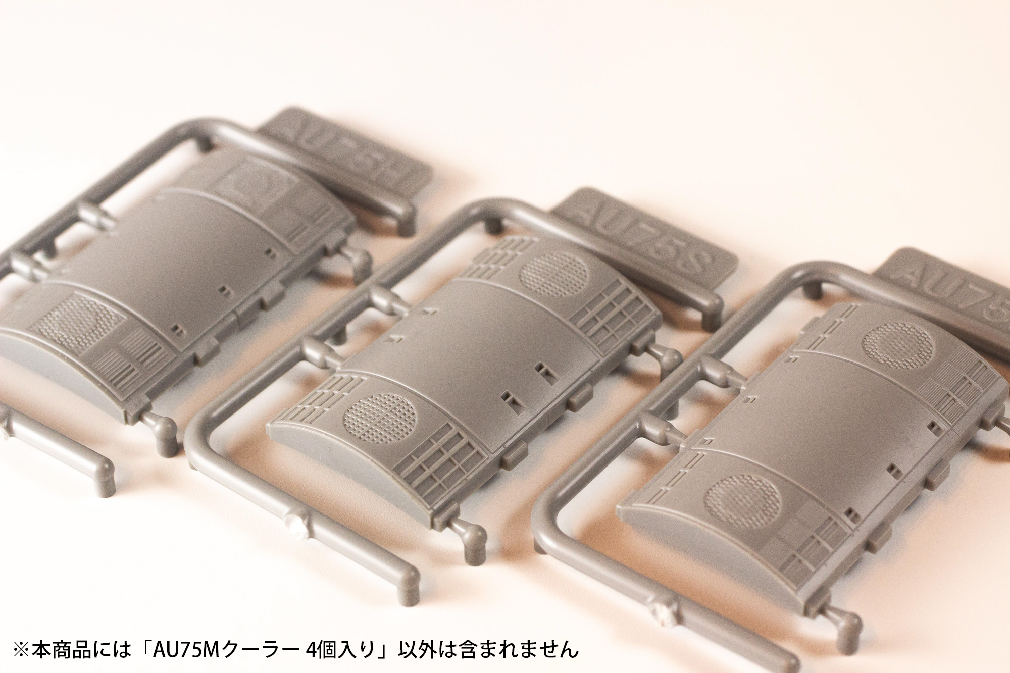 商品情報 商品名:AU75M クーラー 4個入り スケール:1/80 商品サイズ:約44.5mm×26mm 定価:1,200円(税込価格 1,320円) 発売:2025年4月発売 仕様:プラスチックキット