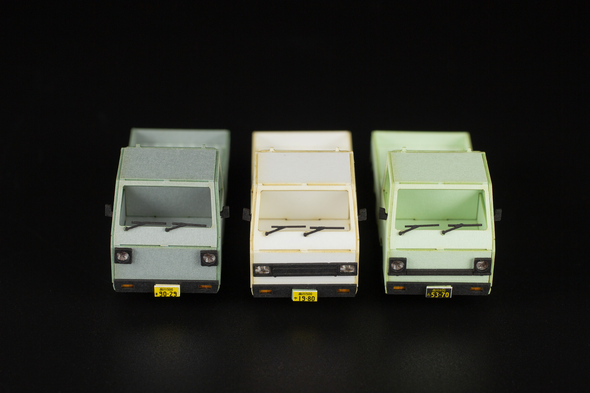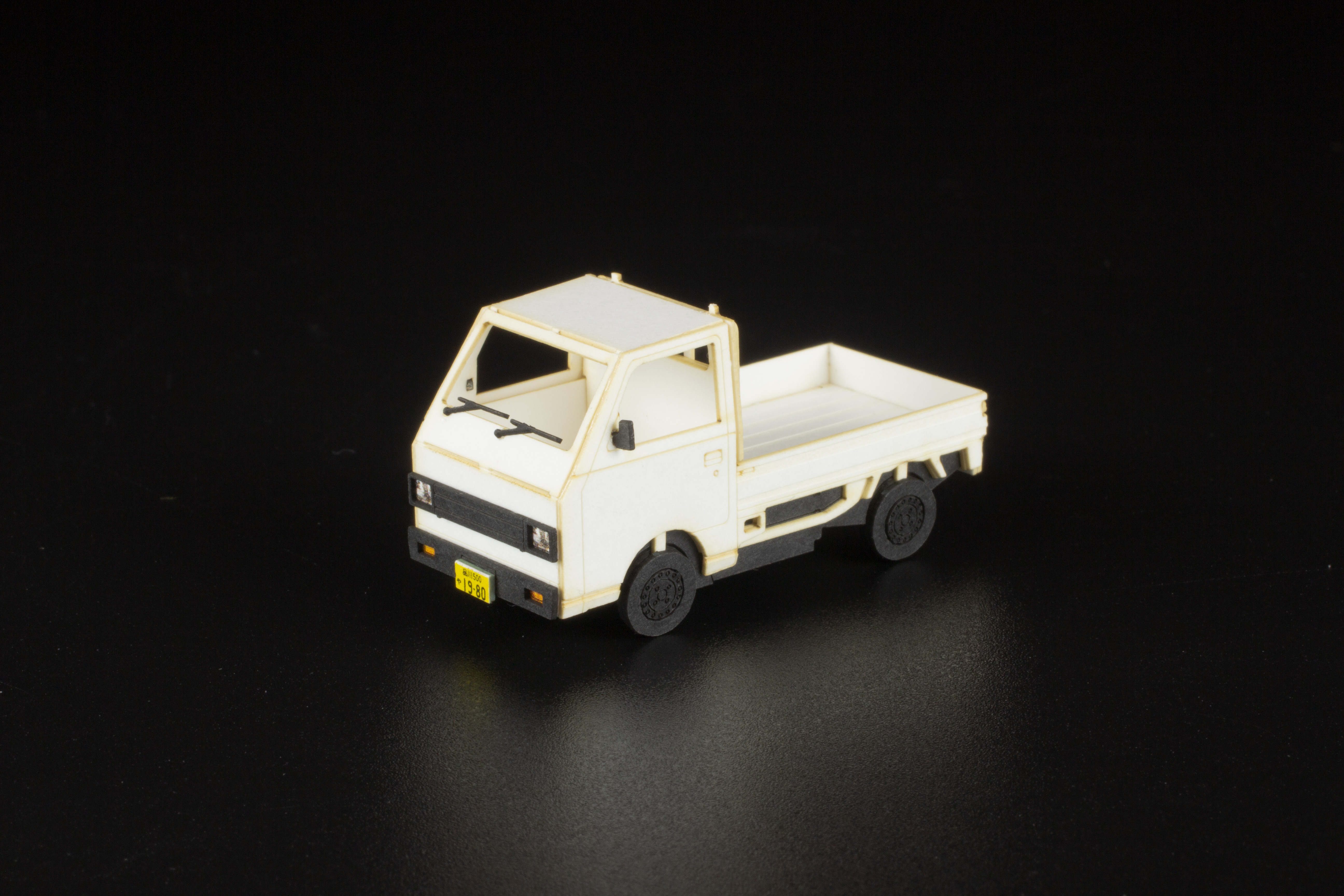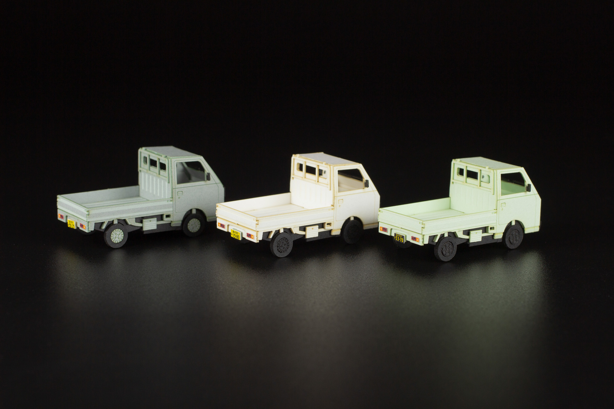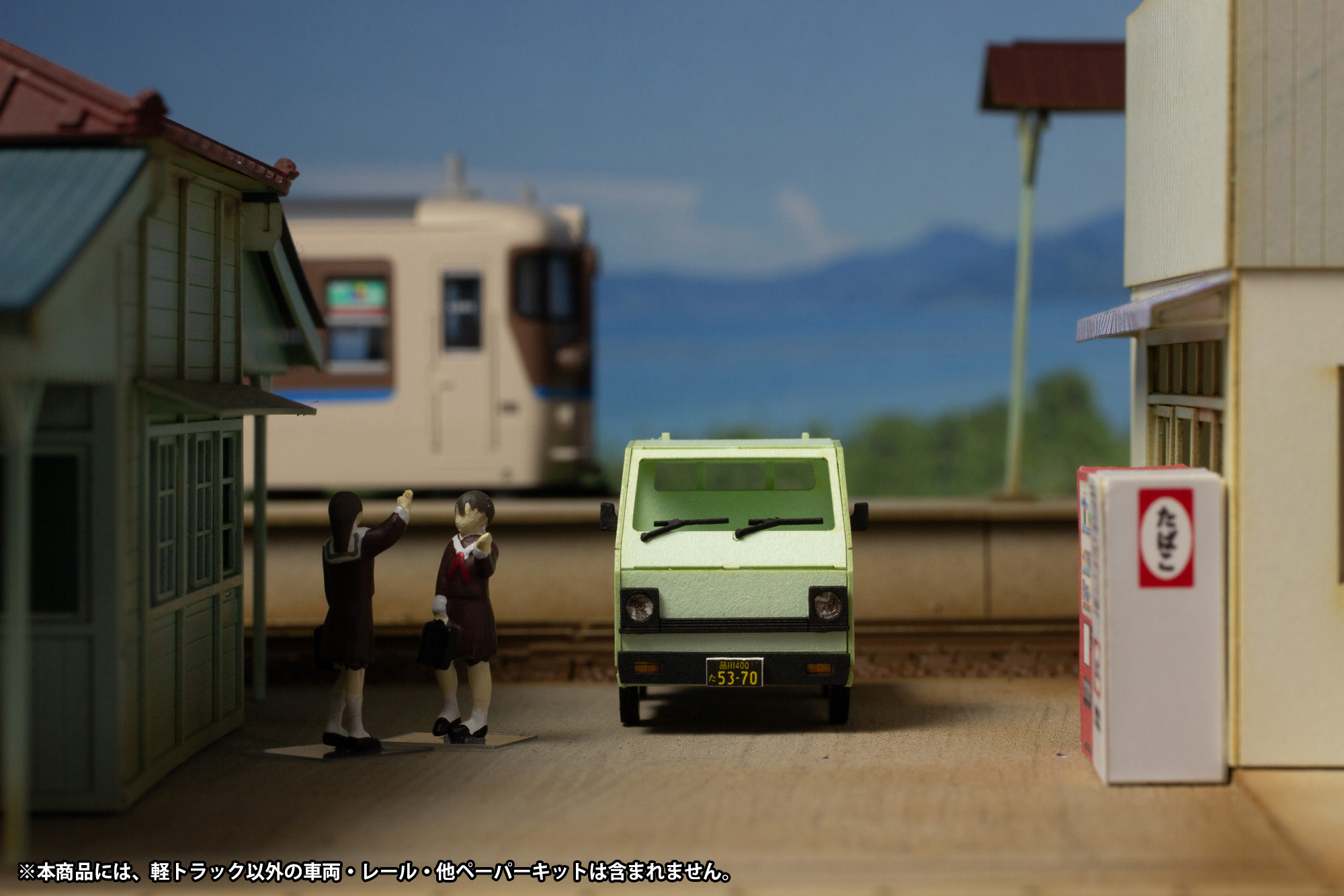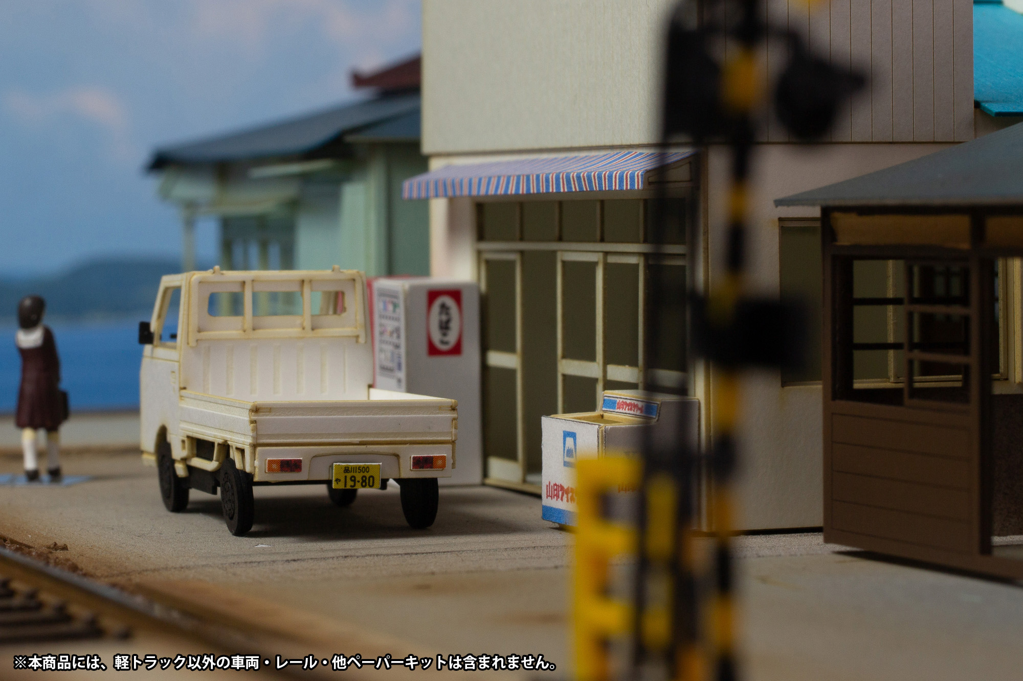 1/80スケール(HOゲージ)サイズのジオラマ作製時や、鉄道模型の撮影時に、チョット欲しい『かゆい所に手が届く』アイテムを展開するペーパーキット【まちかどアクセサリーシリーズ】最新作は経済性・優れた積載量と使い勝手、そして小回りの効く機動性を併せ持った軽トラックをラインナップ!