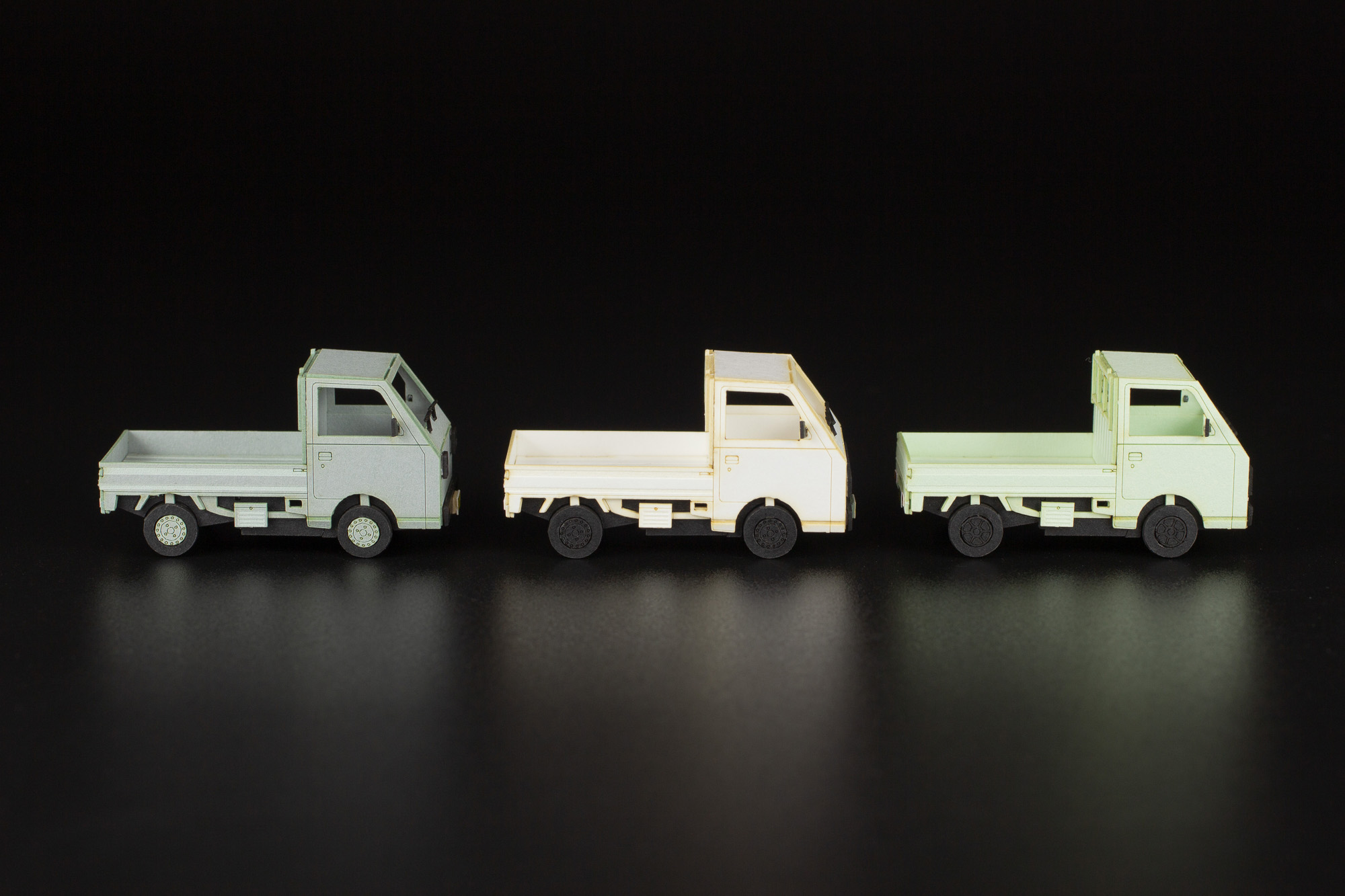 【軽トラック】では、白・シルバー・淡草の3色が各1台ずつ入ったセットとなります。