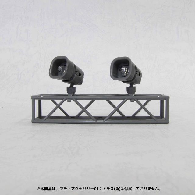 「プラ・アクセサリー01:トラス(角)」に取り付ける事で「イベントブース」や「工場」を一層オリジナル性のある舞台に作り上げる事が出来ます。